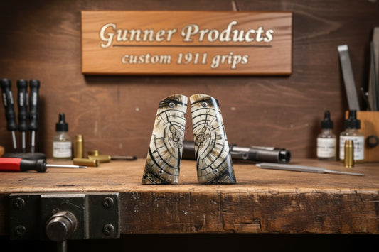 Gunner Products is a veteran run business...I WAS A NAVY HOSPITAL CORPSMAN (MEDIC)...we make custom Mammoth (Mastodon) gun/pistol grips and provide Mammoth(Mastodon) Ivory to the gun and knife trades. I HAVE BEEN GRIP MAKING FOR A VERY LONG TIME( 30 YEARS ) AND USE THE BEST MATERIALS AVAILABLE... NOW MAKING GRIPS FOR A MAJOR 1911 MANUFACTURER... NOBODY MAKES A BETTER GRIP... WE ARE USING A PROPRIETARY NEW STATE OF THE ART STABILIZATION PROCESS...
