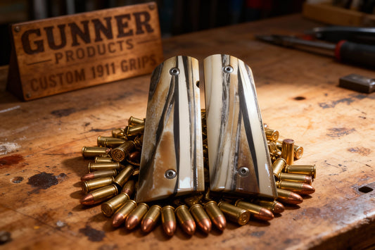 Gunner Products is a veteran run business...I WAS A NAVY HOSPITAL CORPSMAN (MEDIC)...we make custom Mammoth (Mastodon) gun/pistol grips and provide Mammoth(Mastodon) Ivory to the gun and knife trades. I HAVE BEEN GRIP MAKING FOR A VERY LONG TIME( 30 YEARS ) AND USE THE BEST MATERIALS AVAILABLE... NOW MAKING GRIPS FOR A MAJOR 1911 MANUFACTURER... NOBODY MAKES A BETTER GRIP... WE ARE USING A PROPRIETARY NEW STATE OF THE ART STABILIZATION PROCESS...