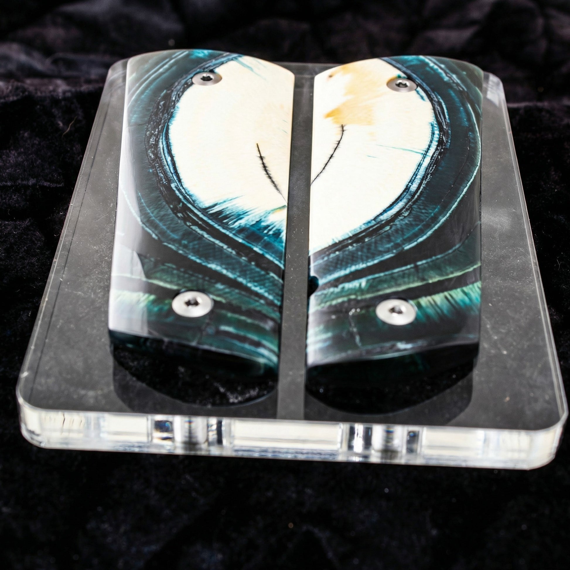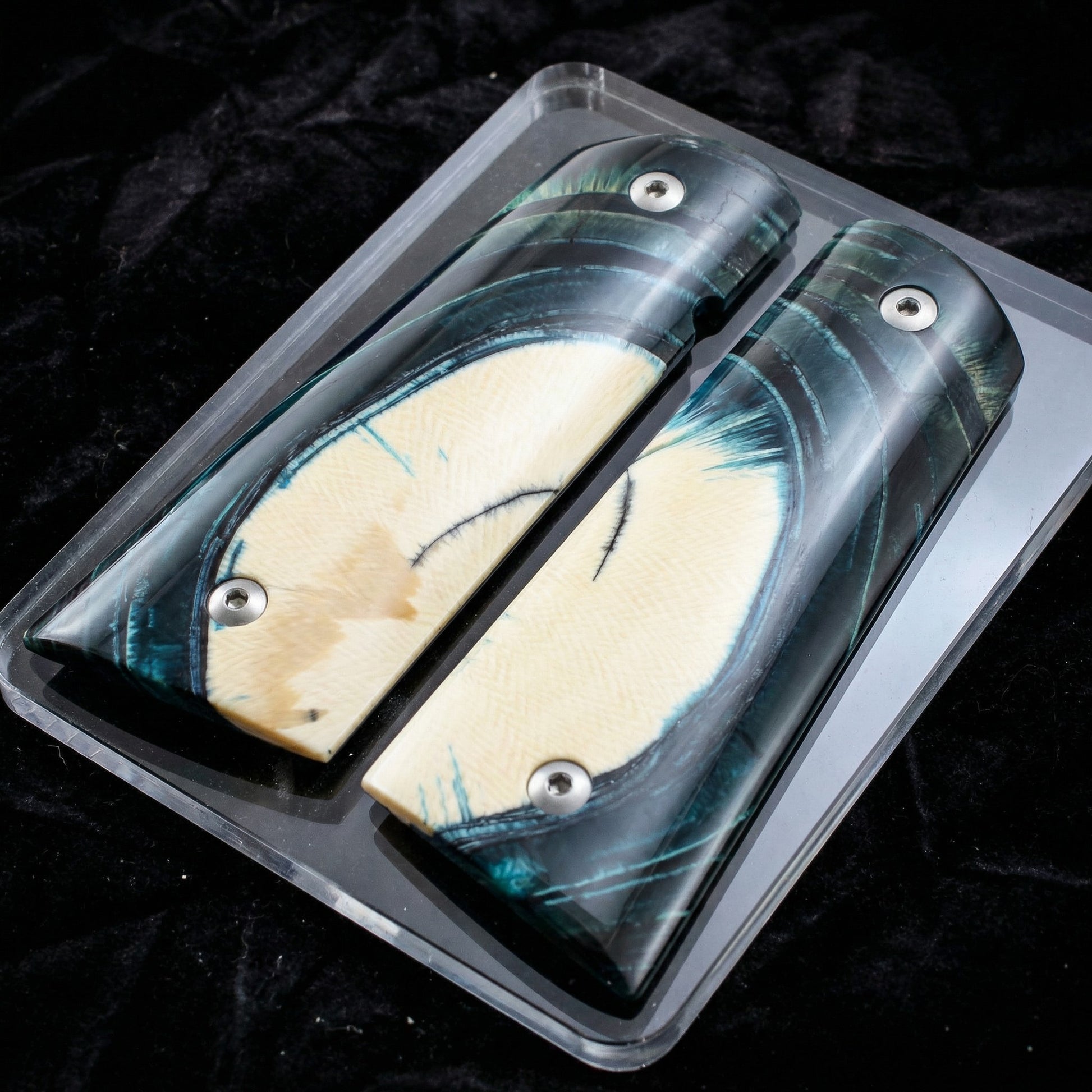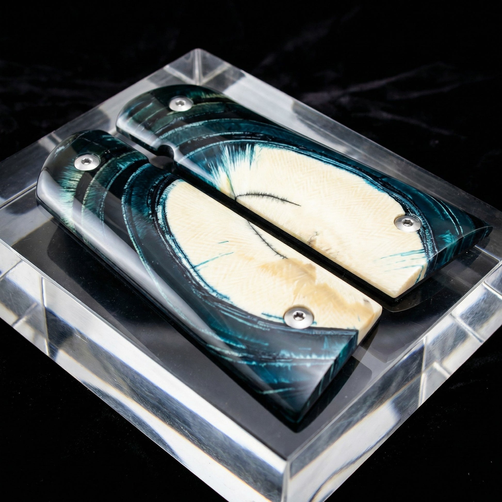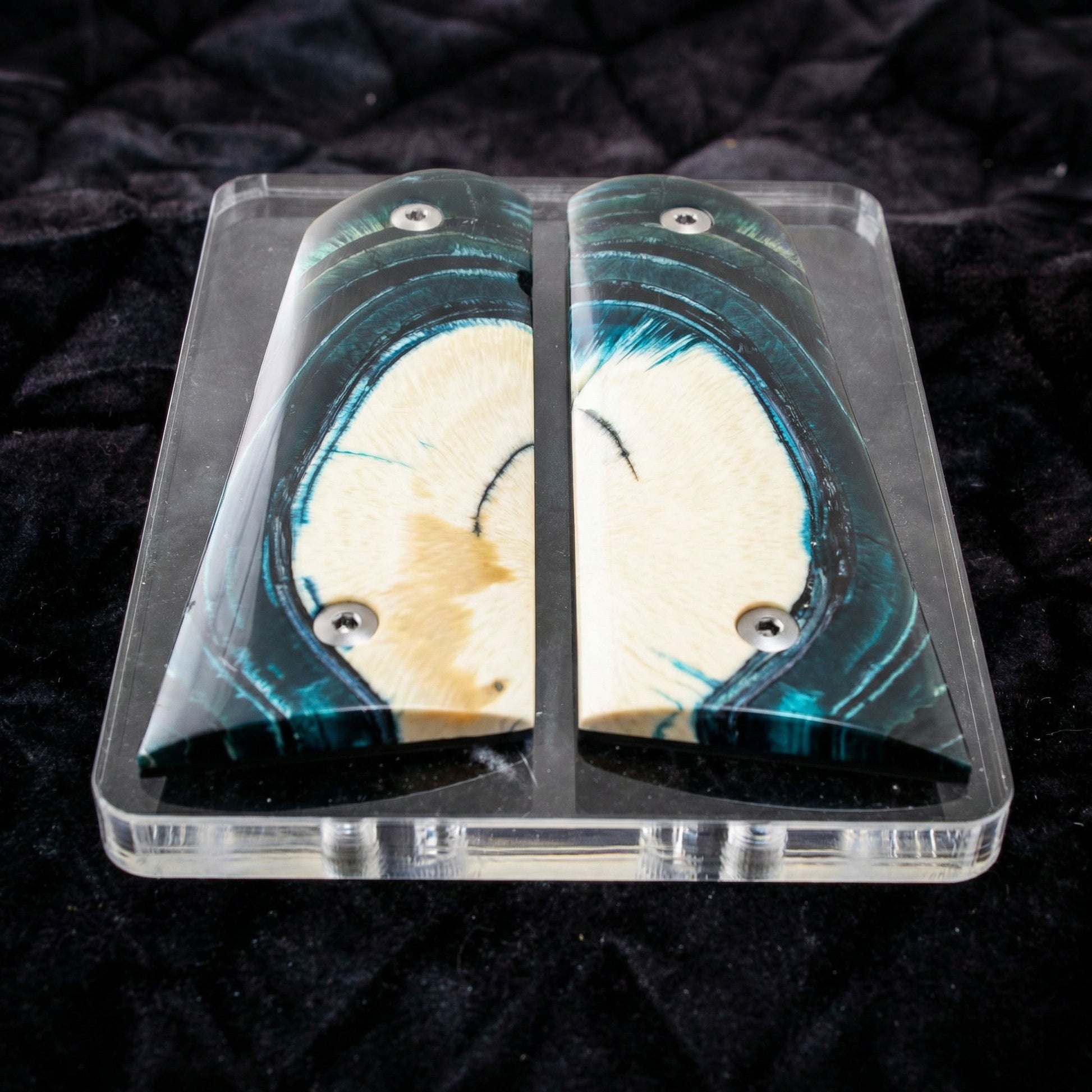 BLUE CROSSCUT MAMMOTH IVORY 1911 GRIPS A-2880