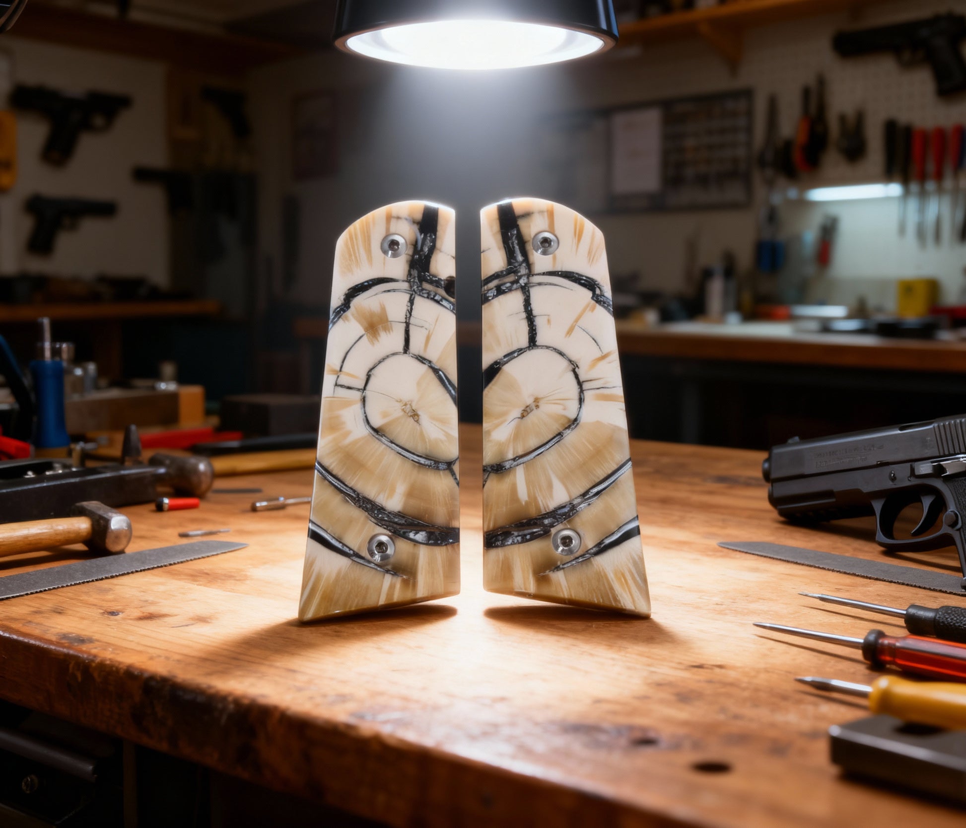 Gunner Products presents an extraordinary offering for the discerning collector: crosscut mammoth ivory grips meticulously crafted by our master artisan with over three decades of dedicated experience.