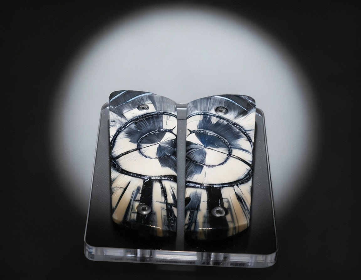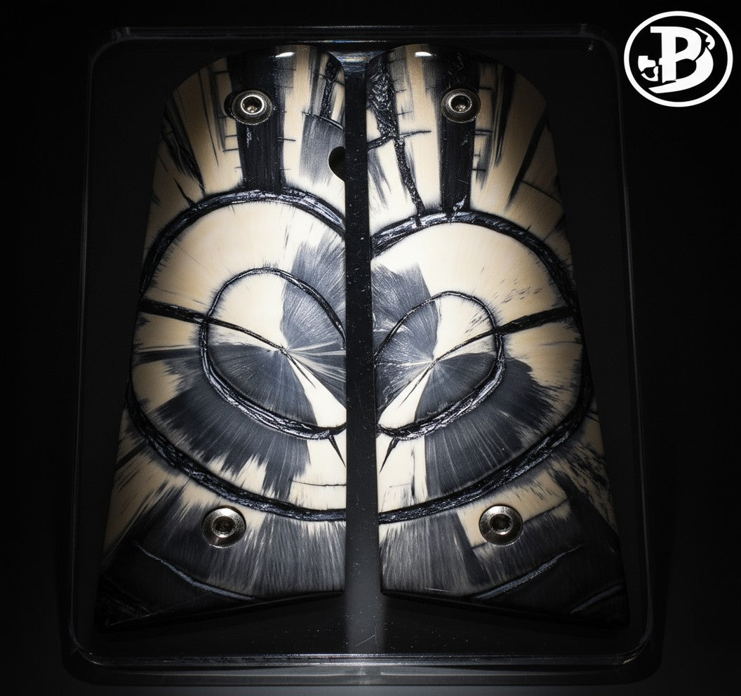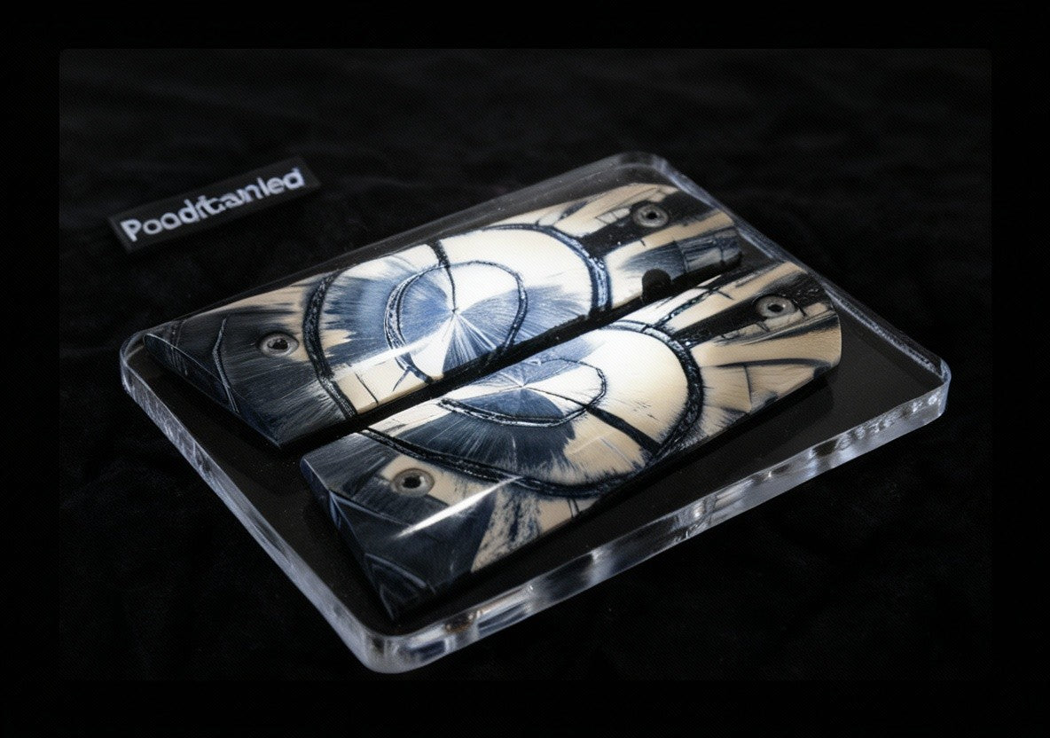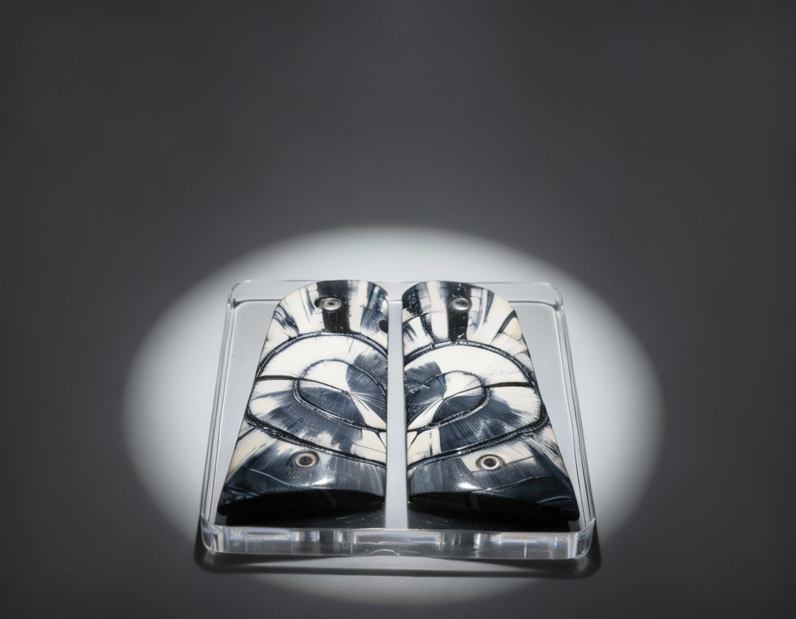 Ancient material, modern precision- Crosscut mammoth ivory grips crafted for the discerning 1911 connoisseur. THESE GRIPS ARE A BARGIN... One of the screw holes had an issue but was fixed SO SOMEONE WILL GET A GREAT DEAL.